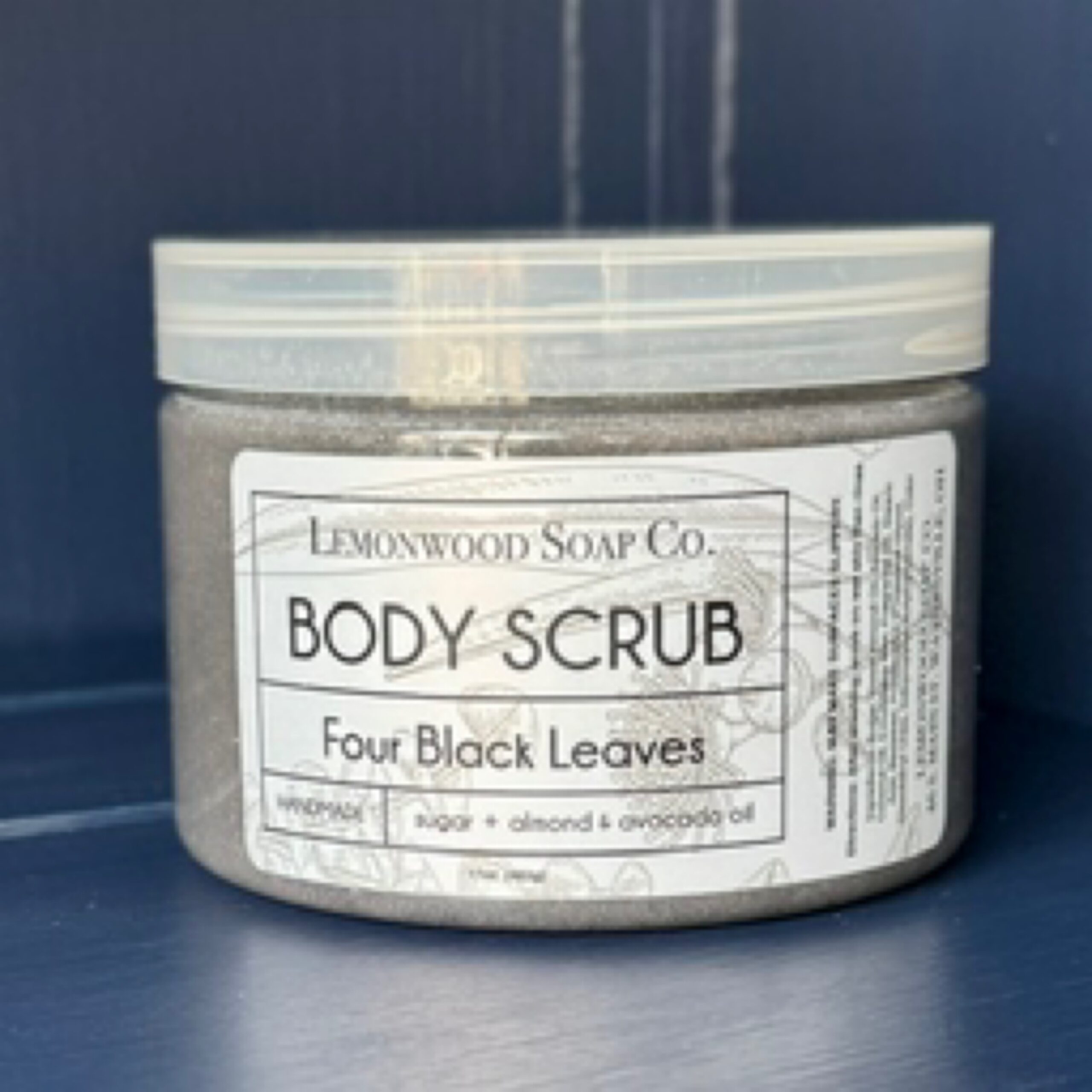 A fresh blend of bay, tobacco, eucalyptus, and peppermint. Our body scrub is made with sugar to naturally remove dead skin and nutrient dense avocado, almond, and coconut oil to moisturize. Leaving skin soft and glowing. Ingredients: Sugar, Sweet Almond Oil, Avocado Oil, Coconut Oil, Emulsifying Wax, Fragrance, Stearic Acid, Beeswax, Paraben Free Preservative, Color